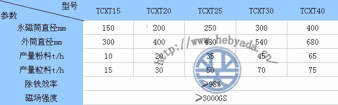 TCXT系列永磁筒主要技術(shù)參數(shù)及性能指標(biāo)參數(shù)表